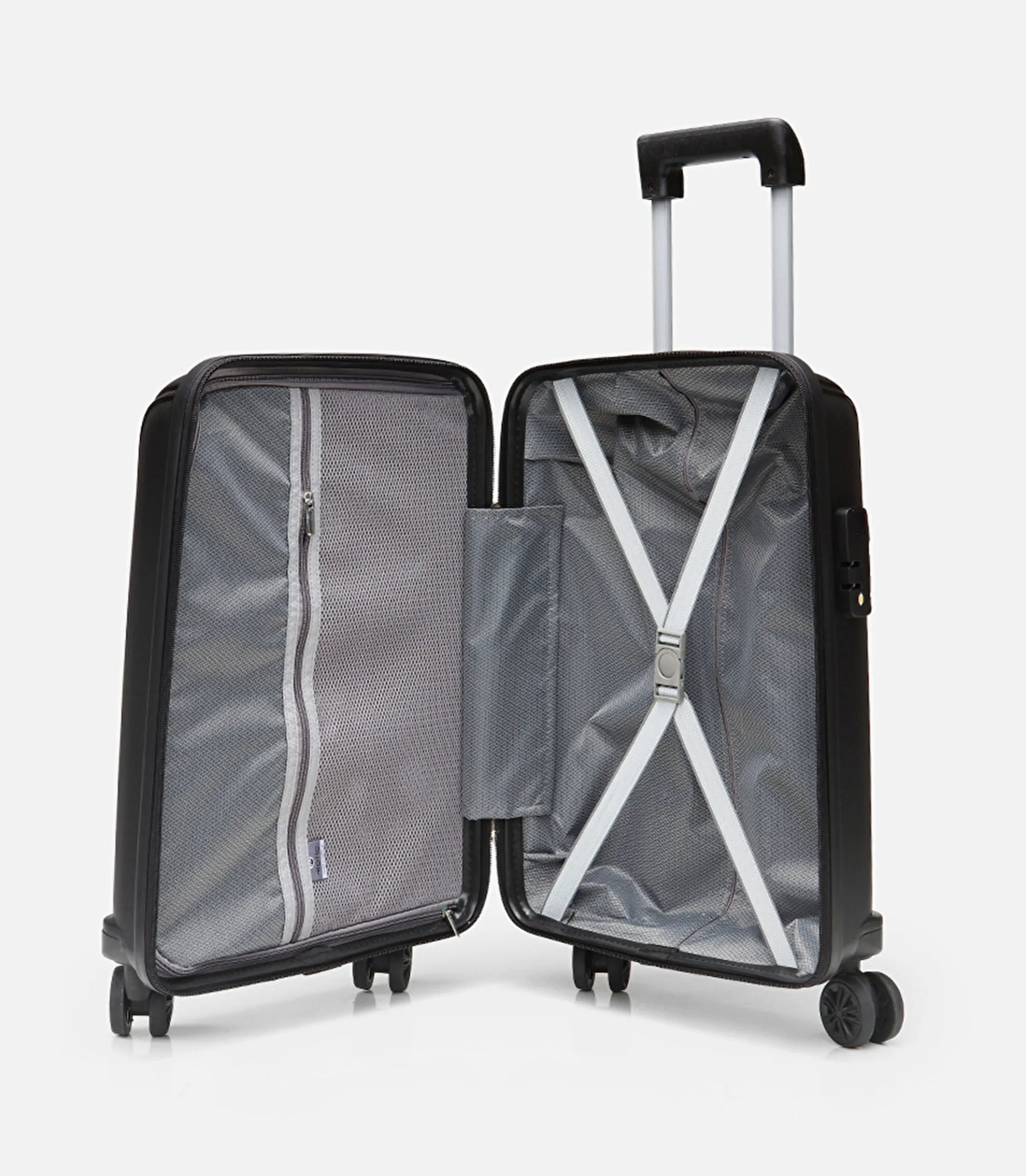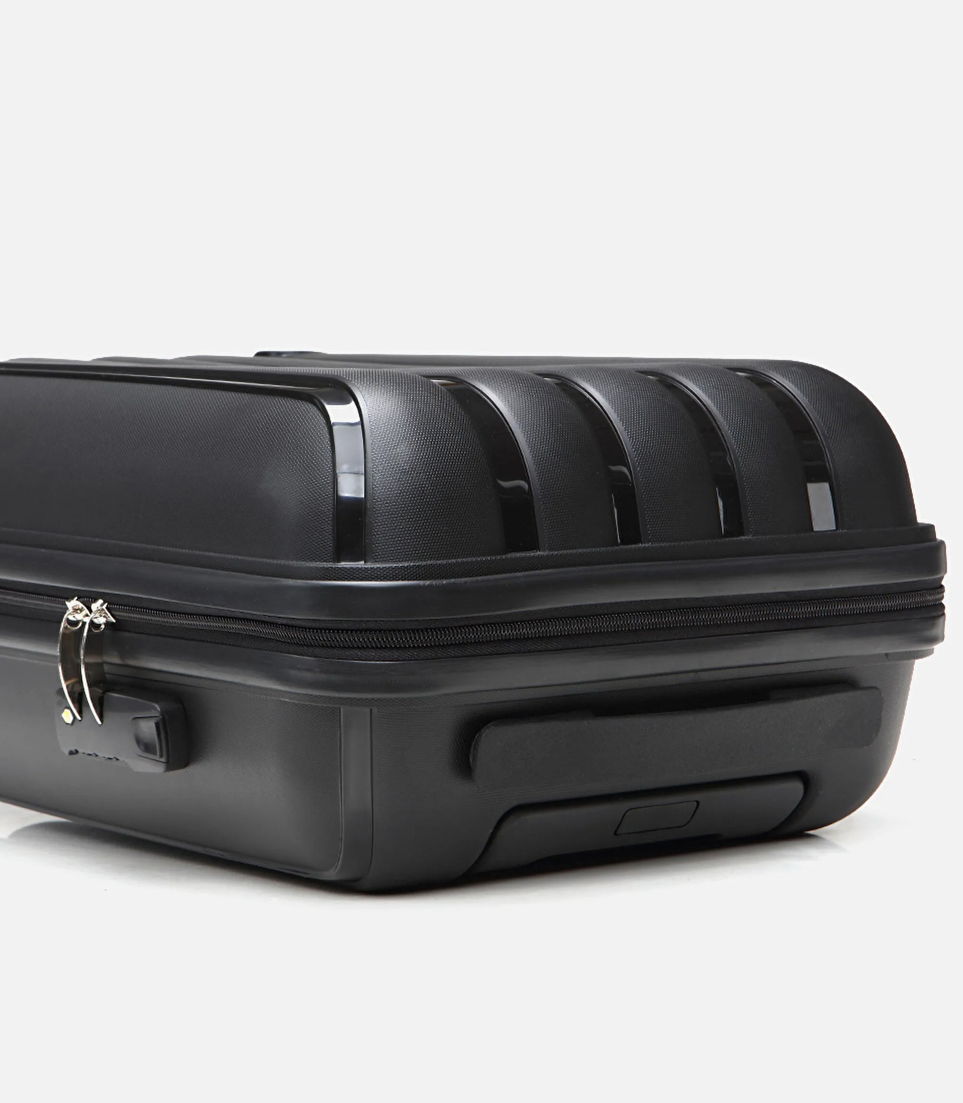 A lightweight, hard-wearing cabin suitcase crafted from polypropylene for daily travel and quick getaways. Clean lines, smooth mobility, and a timeless HOTİÇ look in deep black.