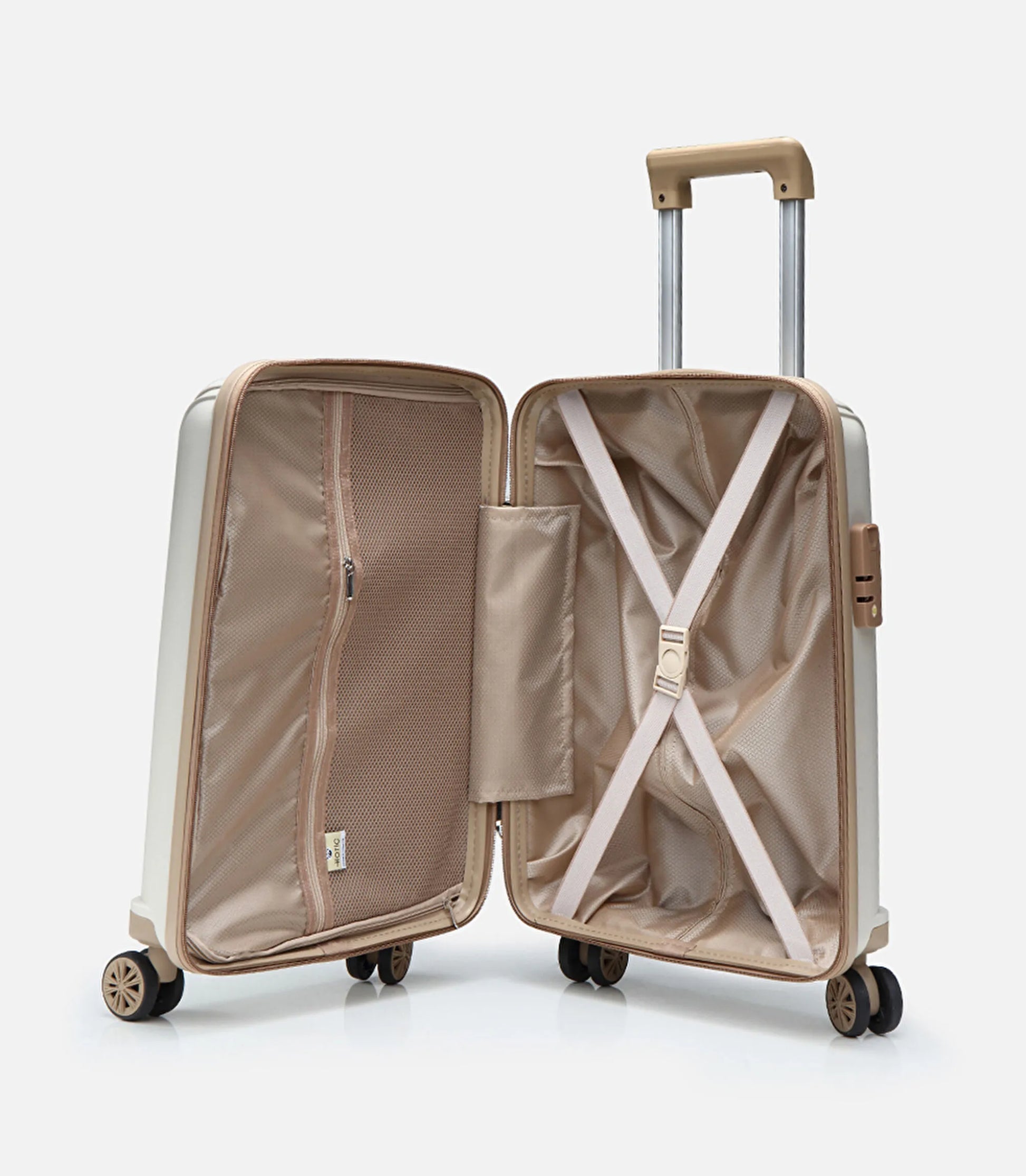 A lightweight, hard-wearing cabin suitcase crafted from polypropylene for daily travel and quick getaways. Clean lines, smooth mobility, and a timeless HOTİÇ look in deep black.
