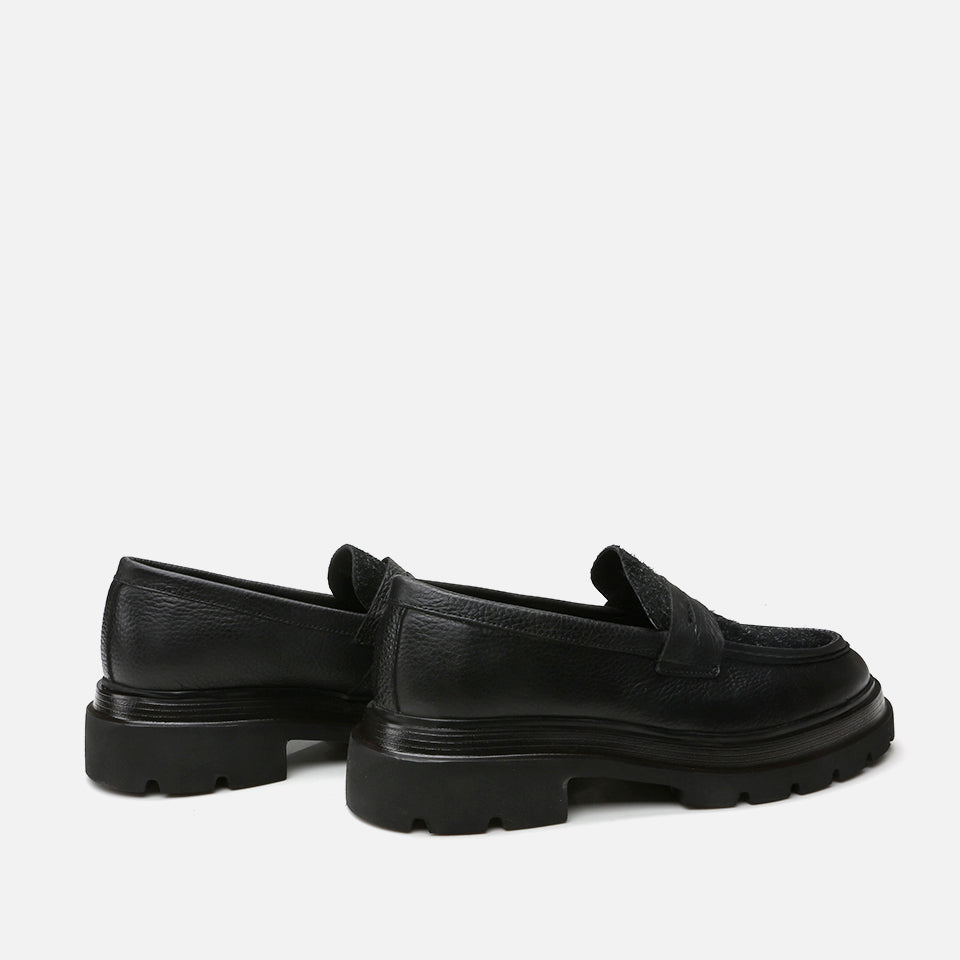 Men’s Genuine Leather Black Loafer - Black