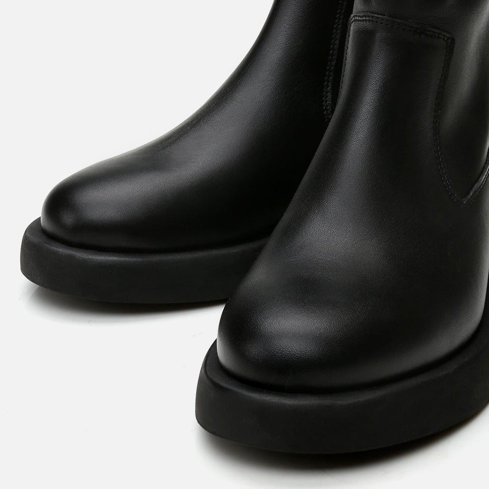 Everyday flat boots with a sleek shaft and flexible sole. Built for walkable comfort and clean, minimalist style.