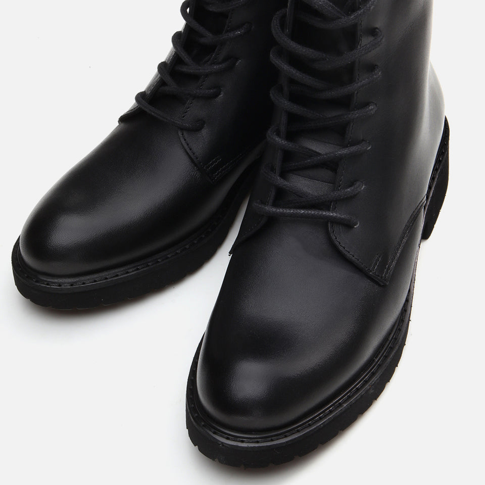Everyday flat boots with a sleek shaft and flexible sole. Built for walkable comfort and clean, minimalist style.