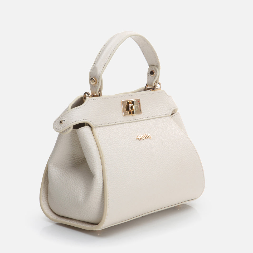 A structured mini crossbody in genuine black leather, inspired by classic top-handle bags and scaled down for modern city life. With its polished twist-lock closure, neat handle and slim strap, it’s the piece you reach for on days when you want to feel put-together from breakfast meeting to late-night taxi home.