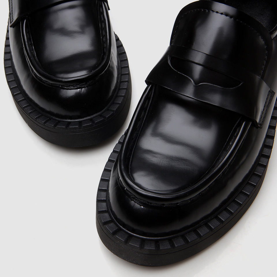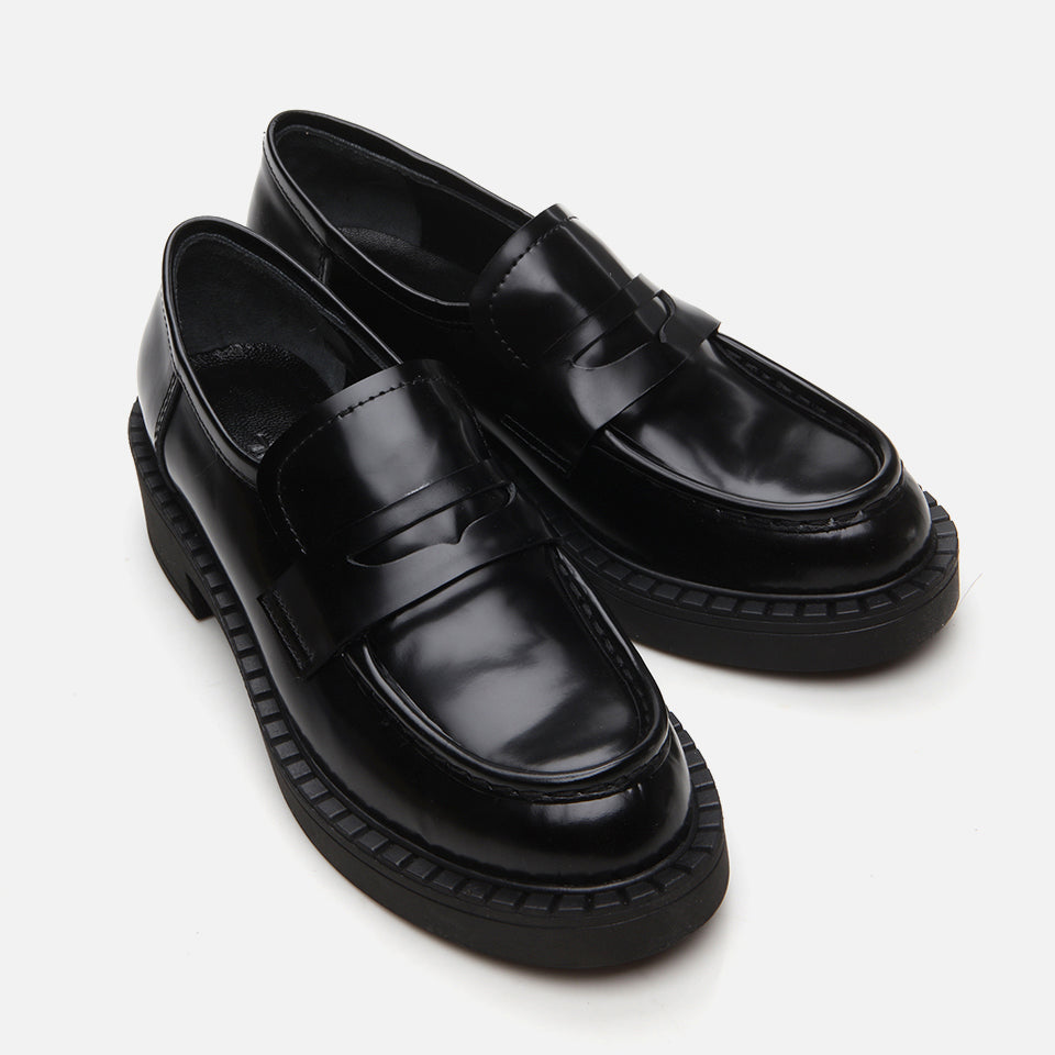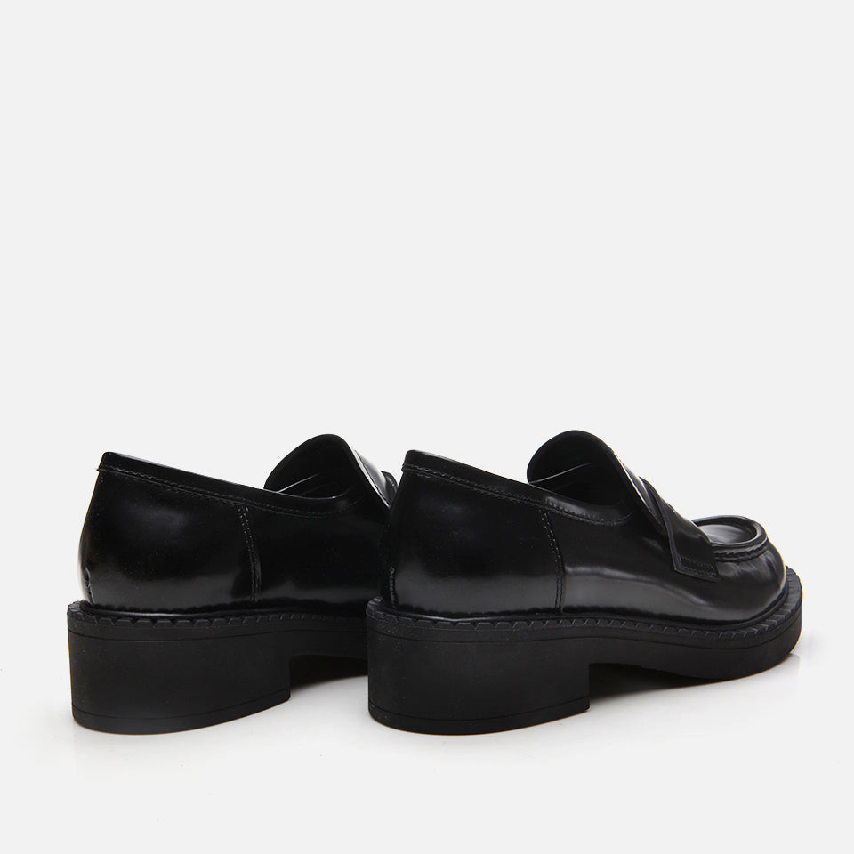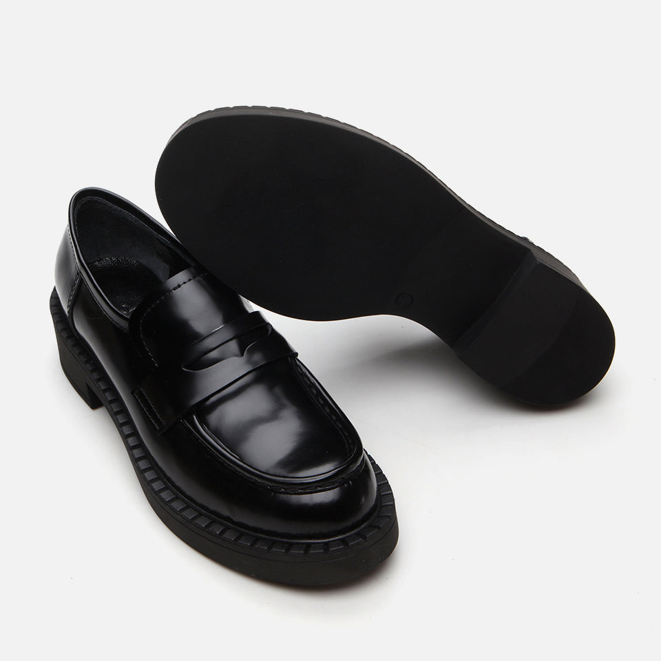 Leather Women’s Black Loafer Shoes - Black