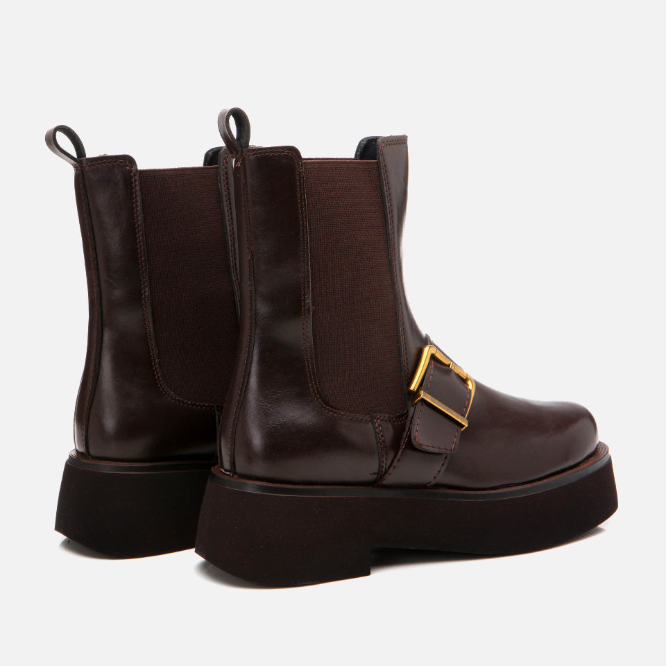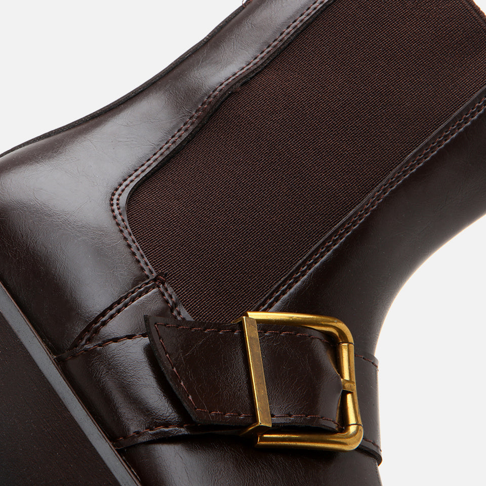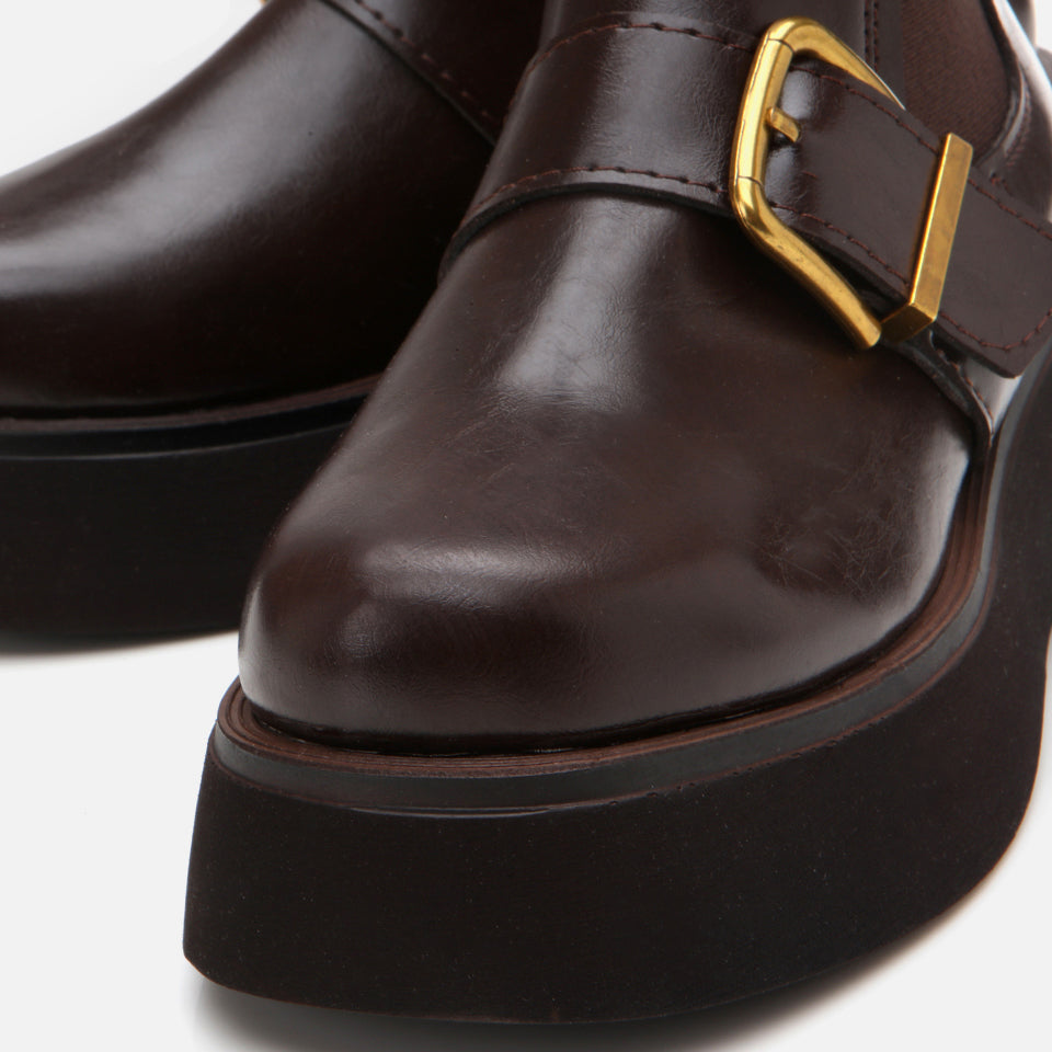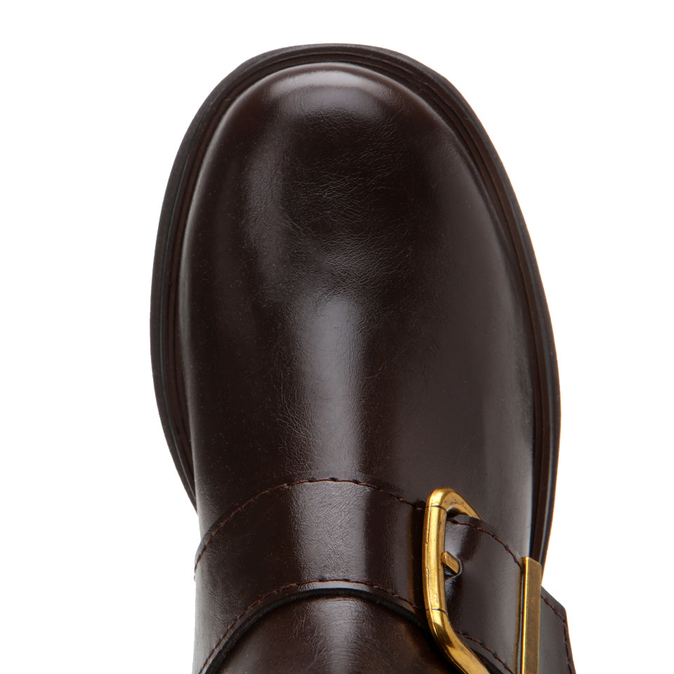 Women’s Faux Leather Buckle Detail Flat Boot - Brown