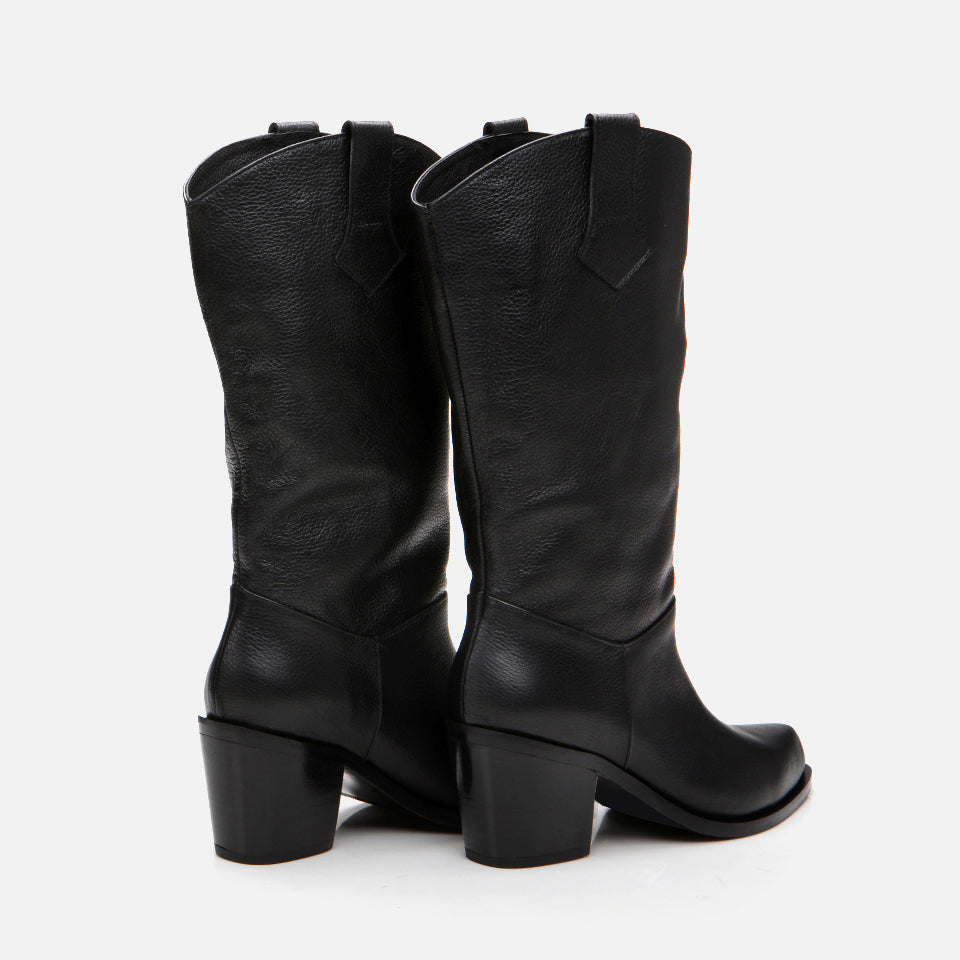 Women’s Genuine Leather Mid-Calf Boots - Black
