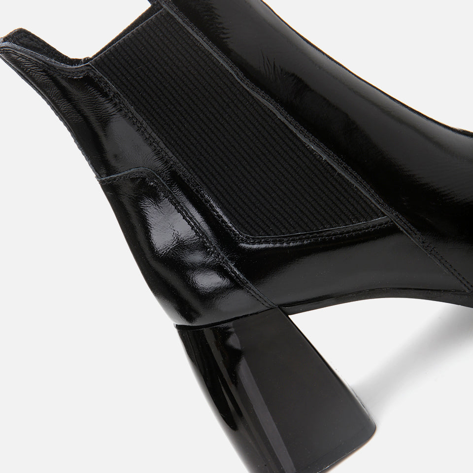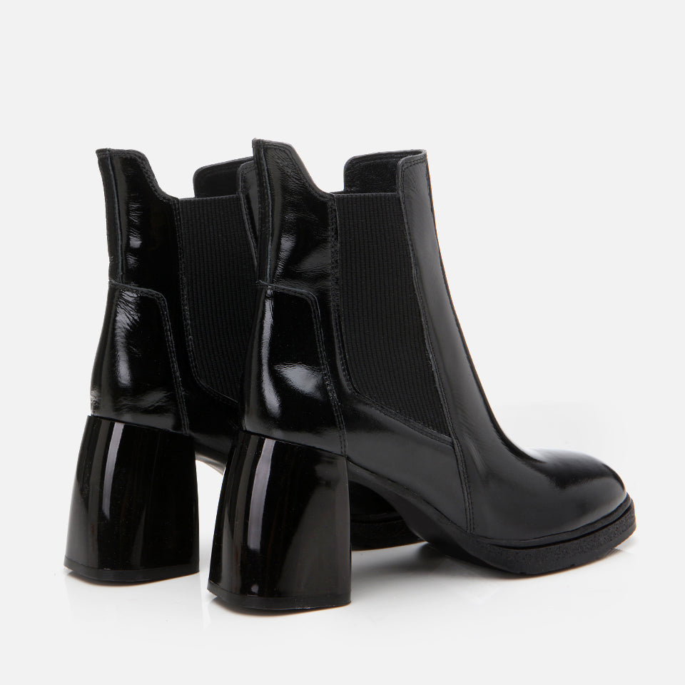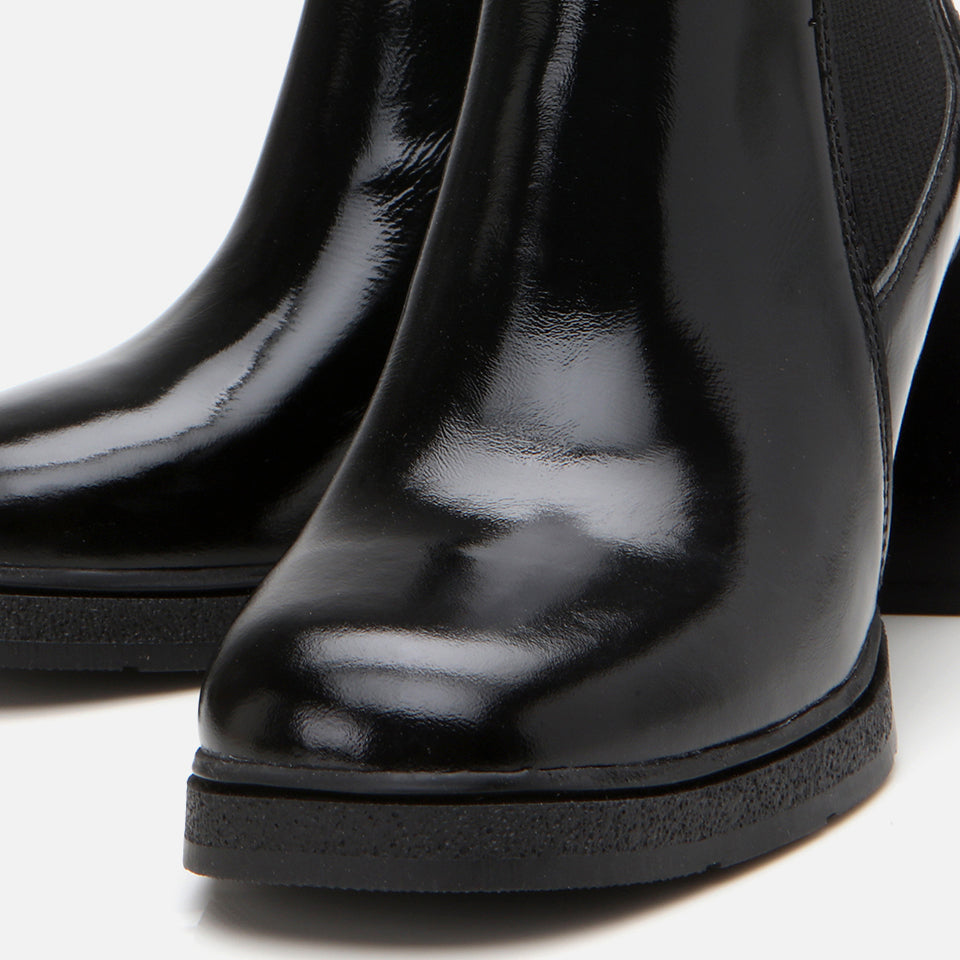 Women’s Genuine Patent Leather Heeled Boot - Black