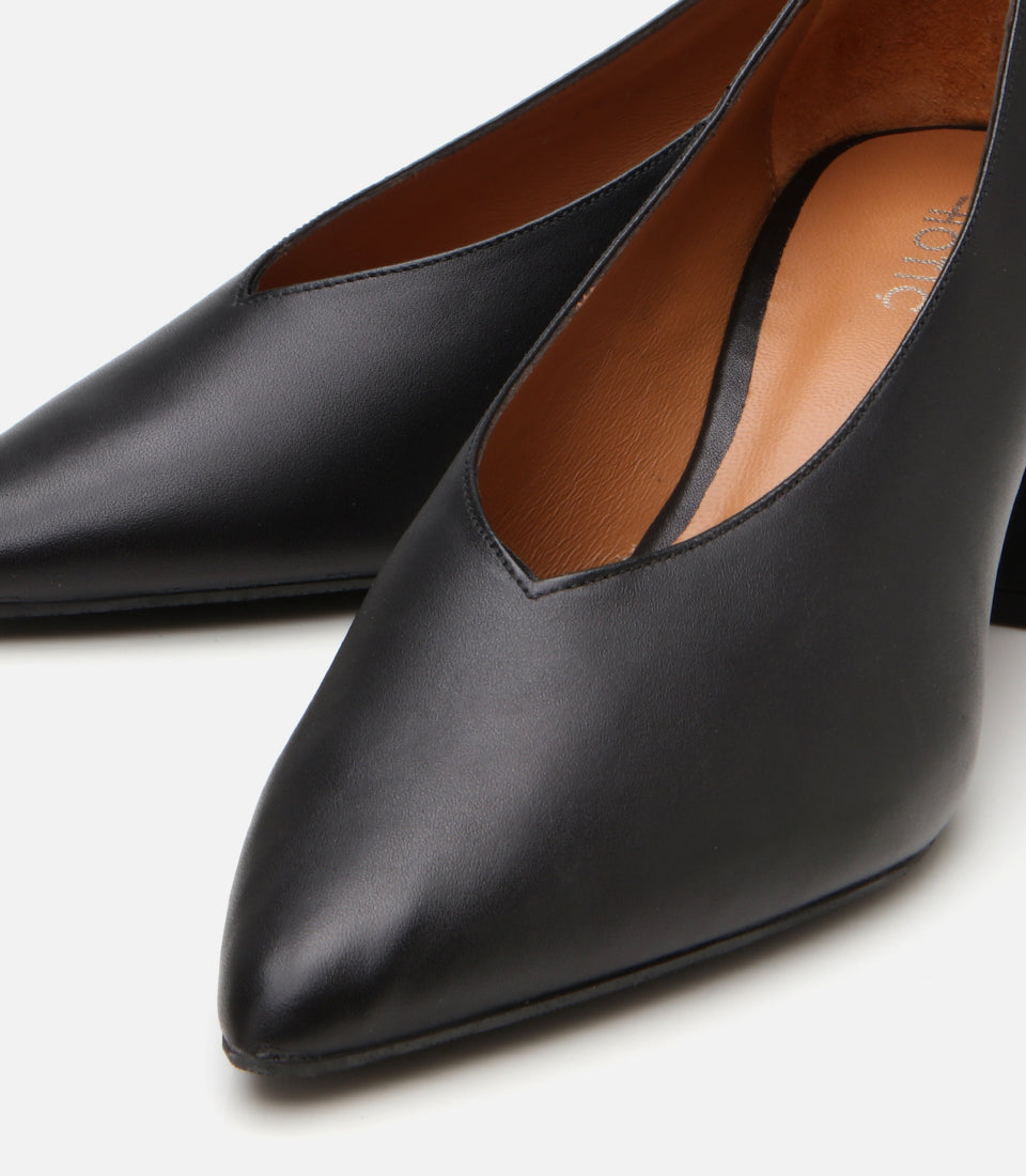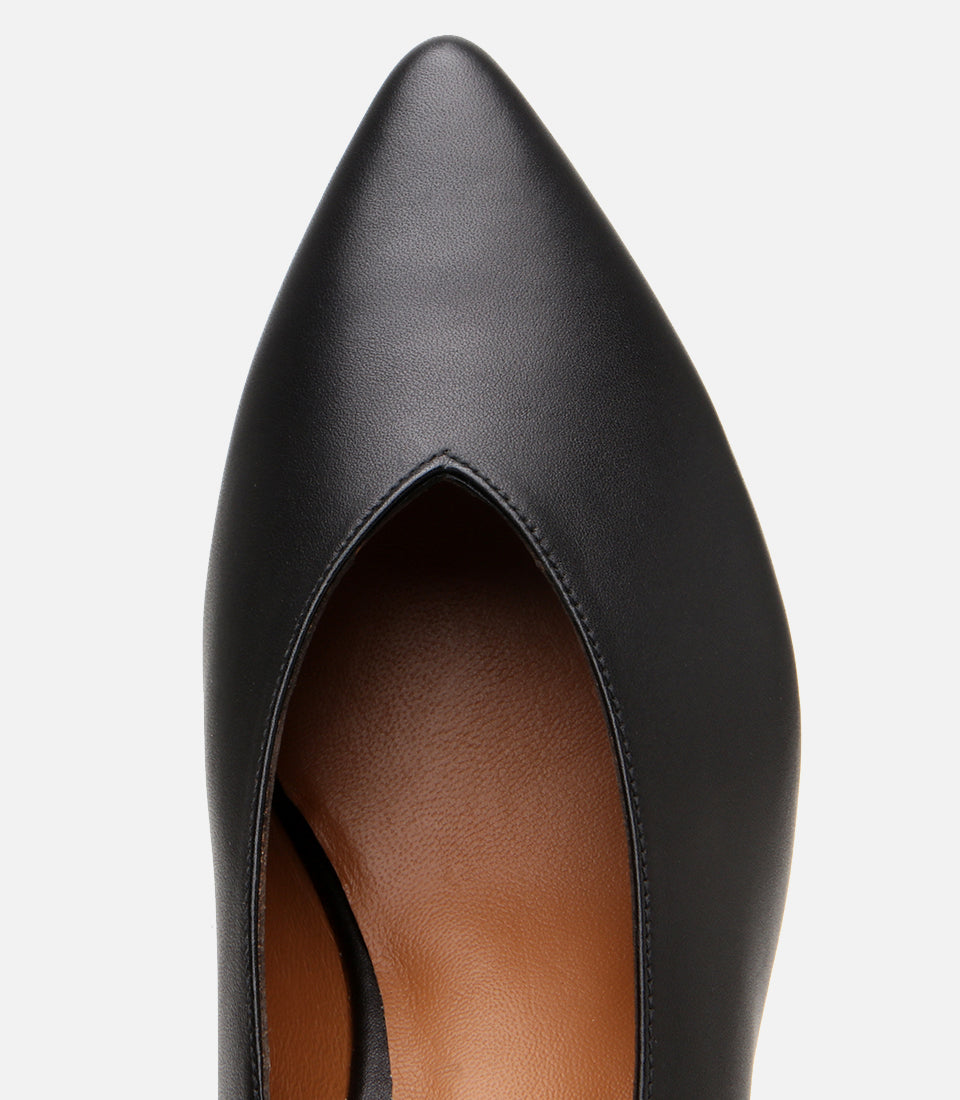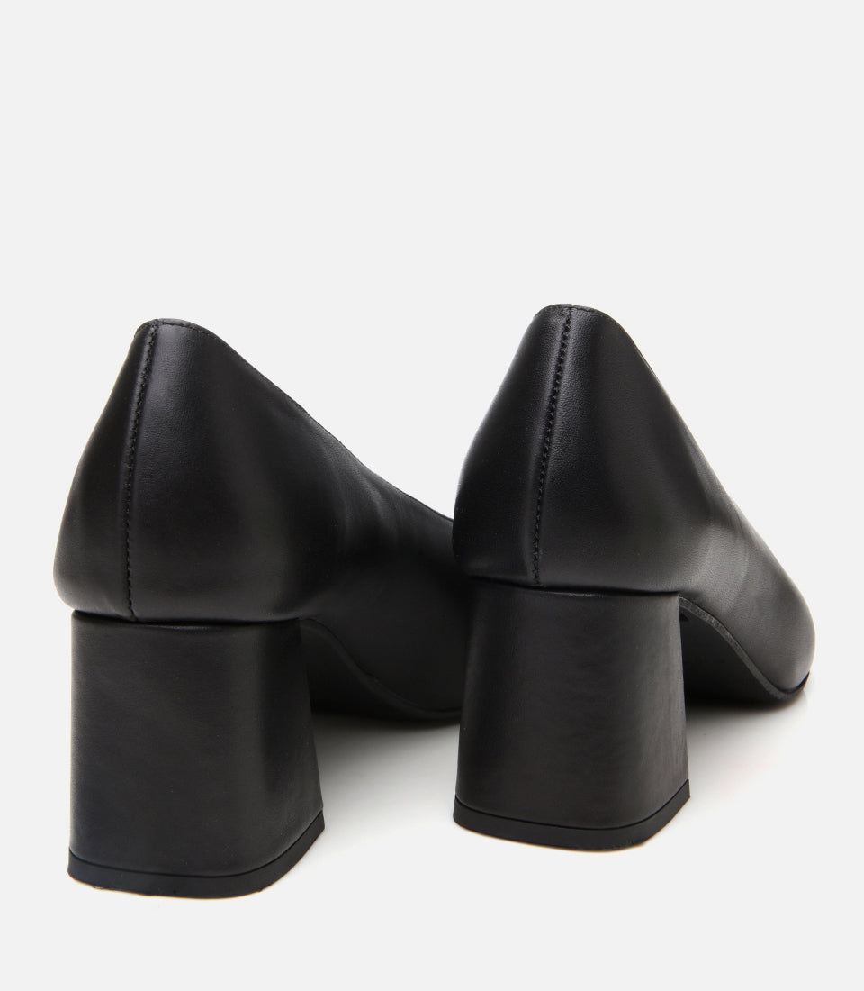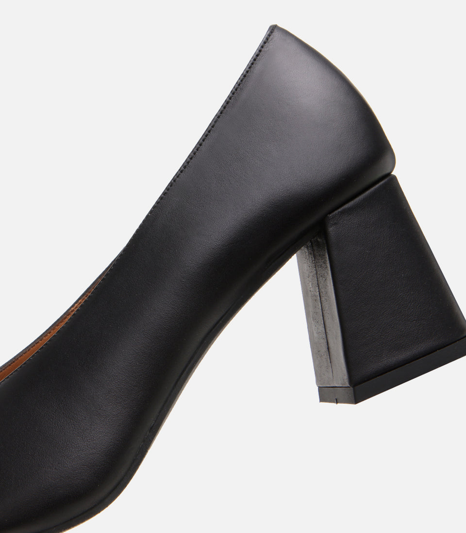 Women’s Leather Black Block-Heel Shoes - Black