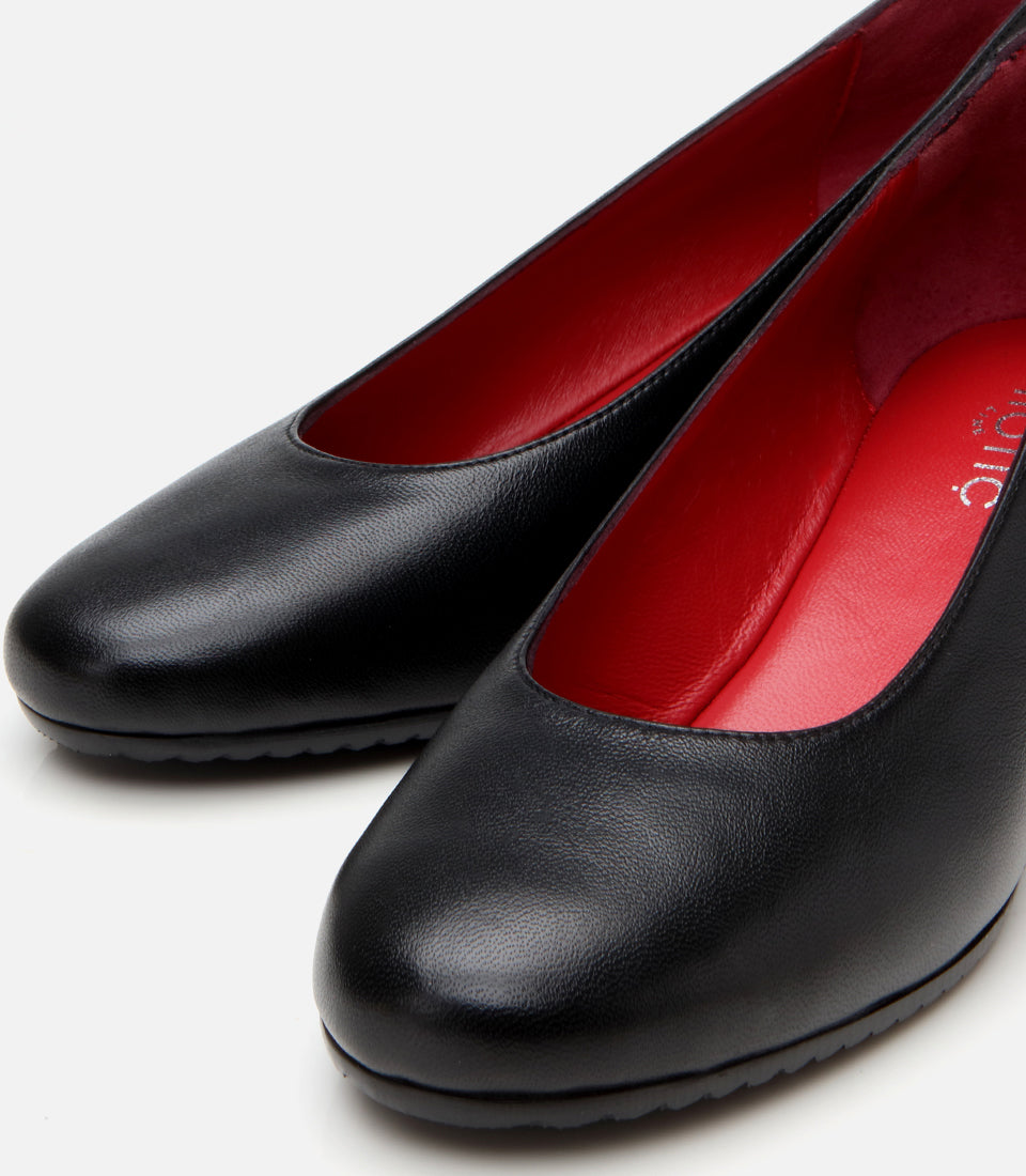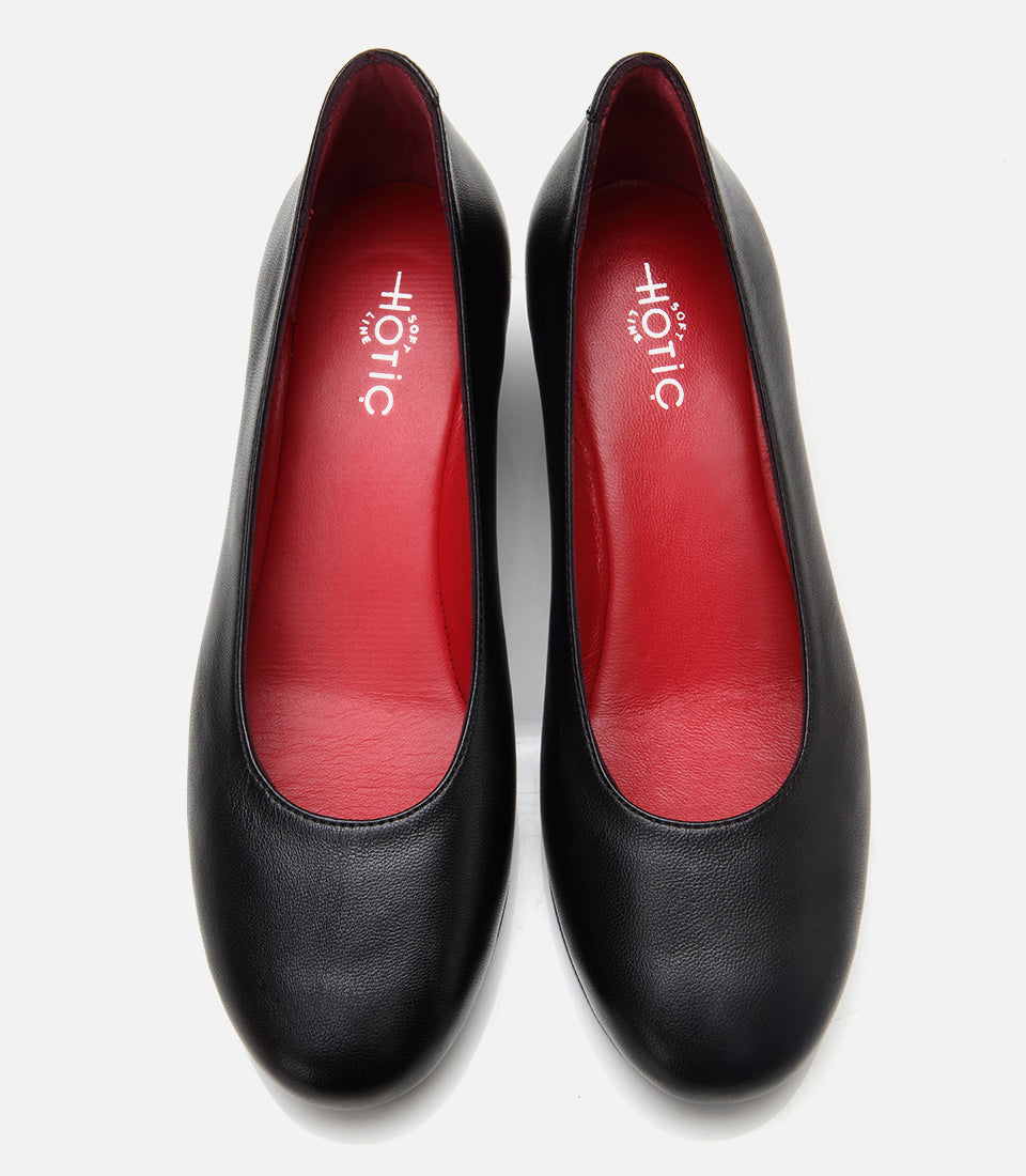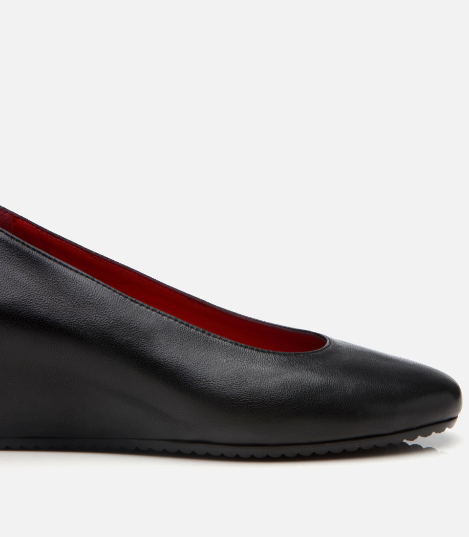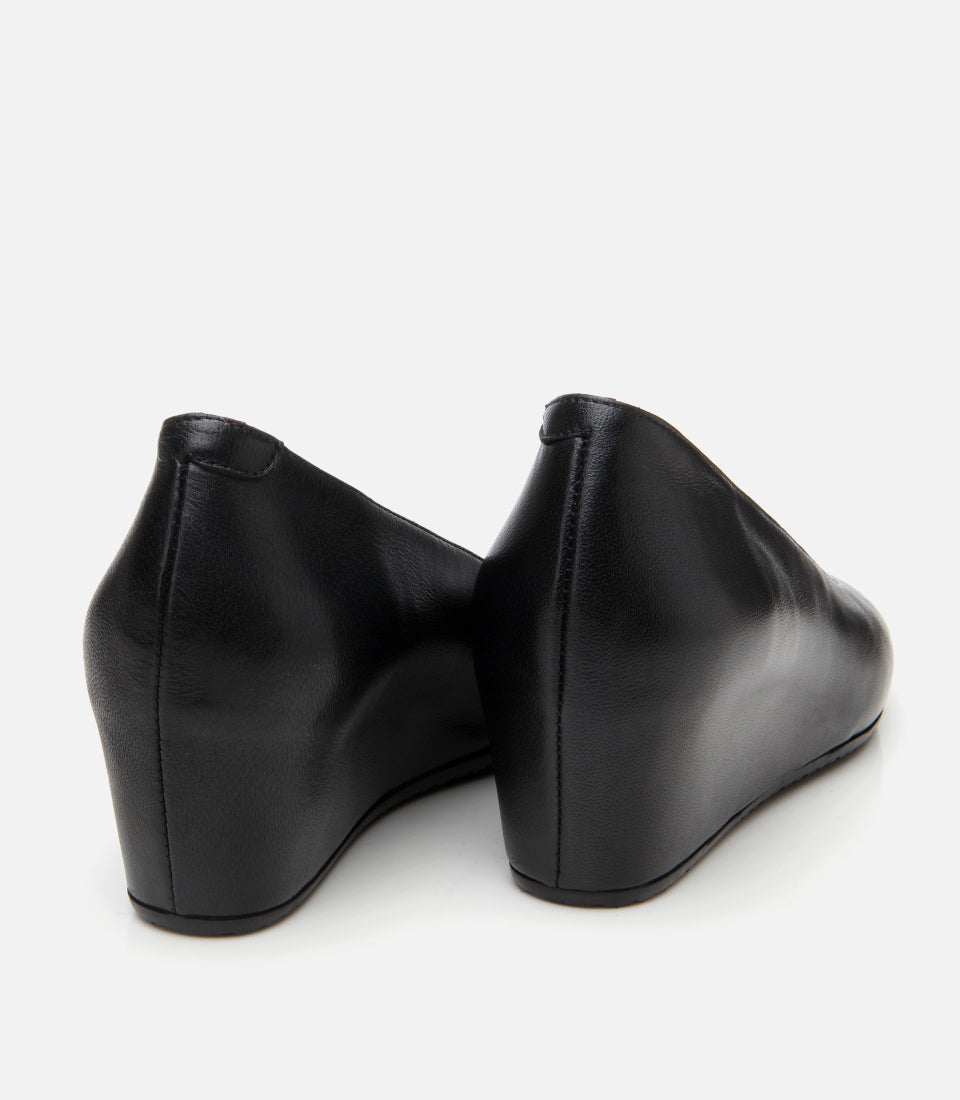 Women’s Leather Black Wedge-Heels Shoes - Black