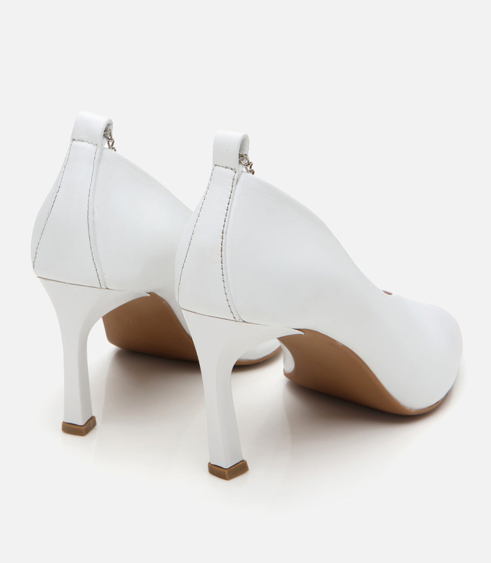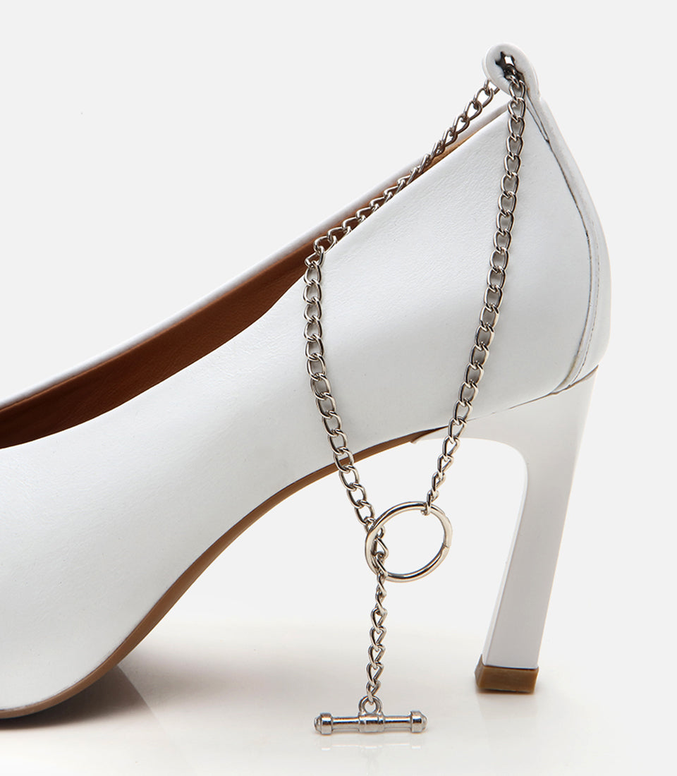 Women’s Leather Chain-Embellished Stiletto Heels - Ecru