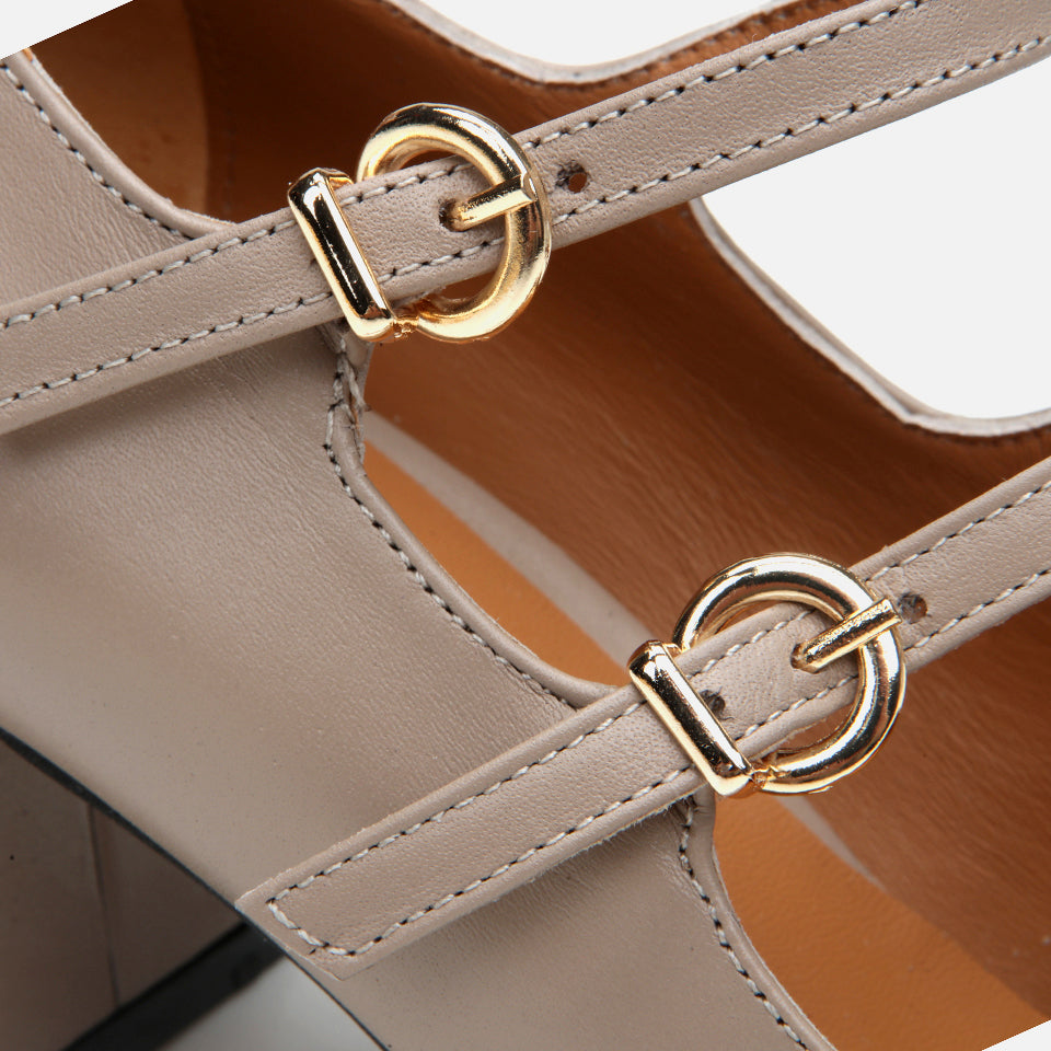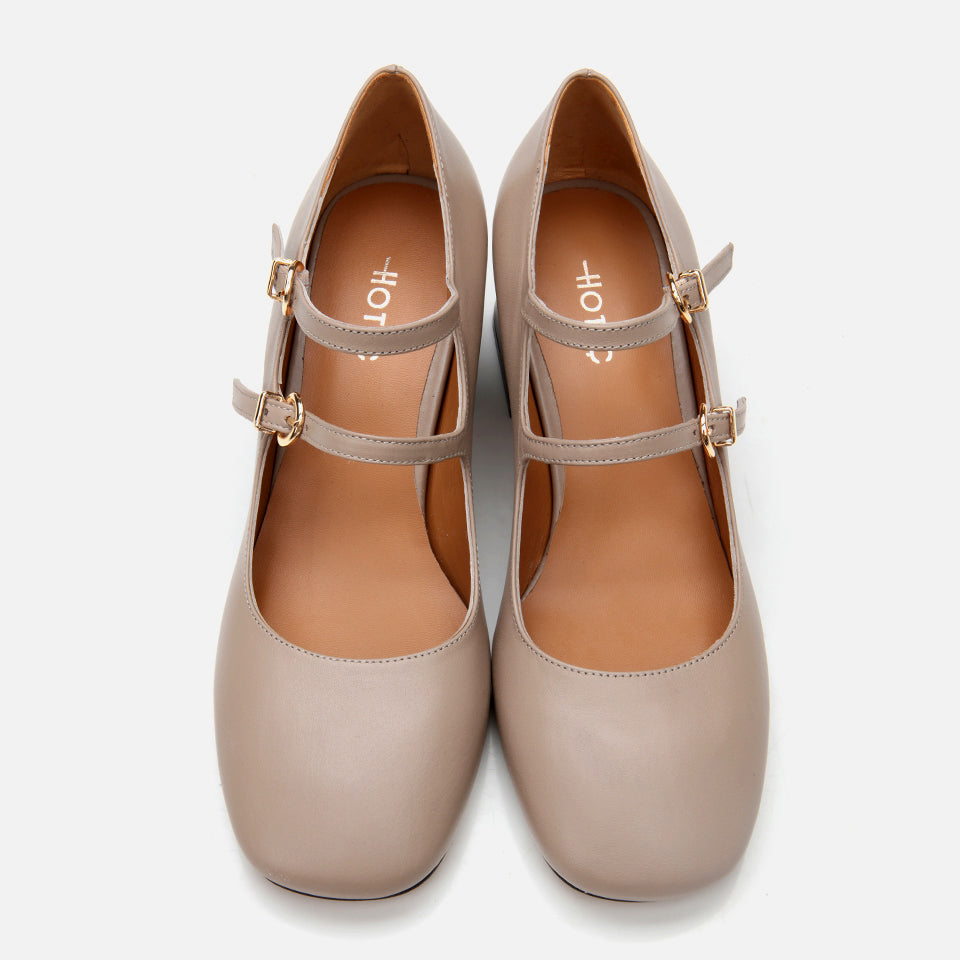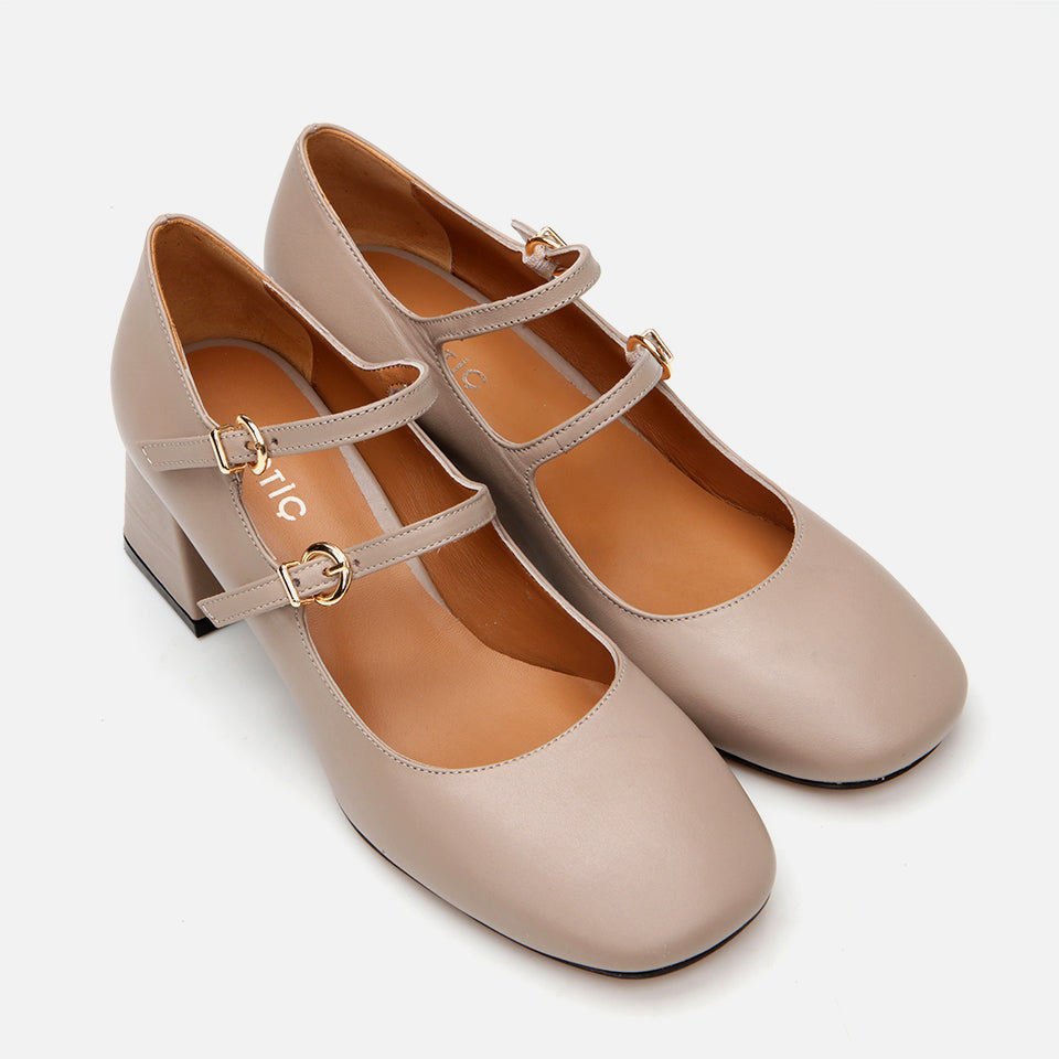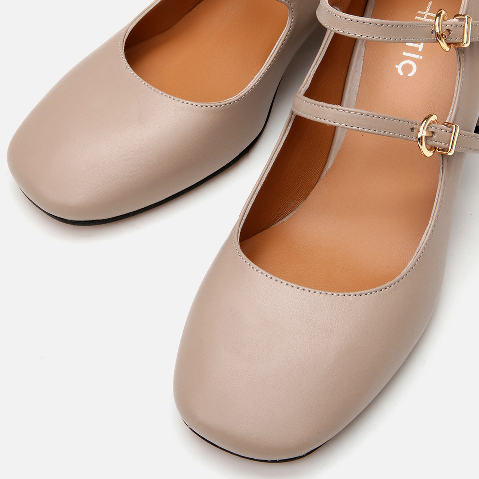 Women’s Leather Mary Jane Block Heel - Taupe