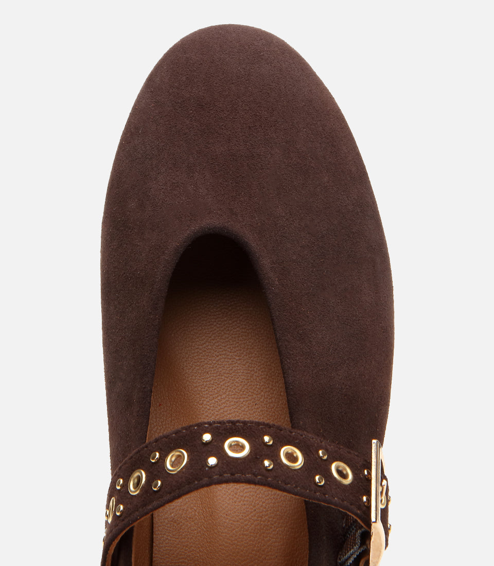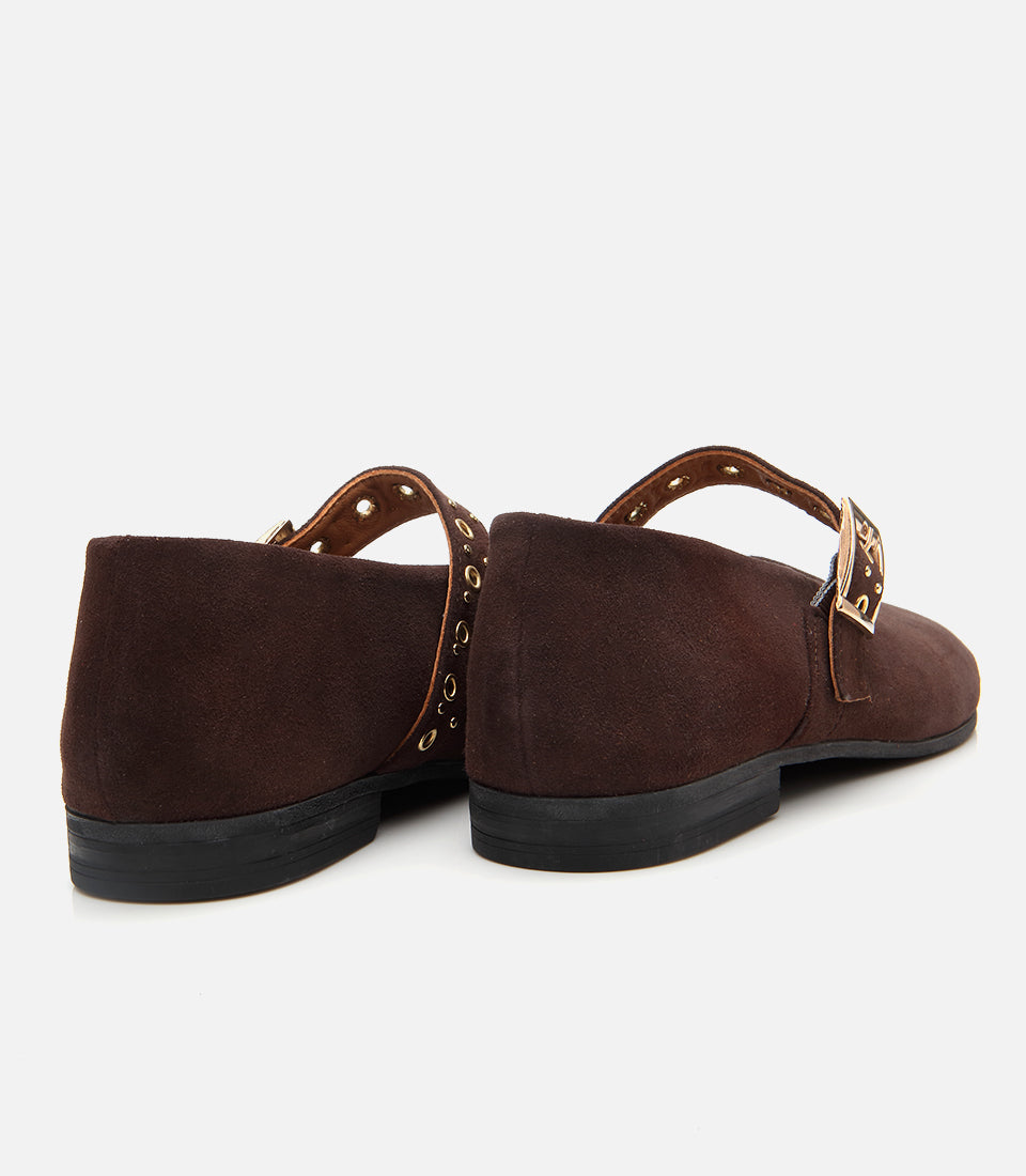 Women’s Leather Mary Jane Buckle Strap Flats - Brown