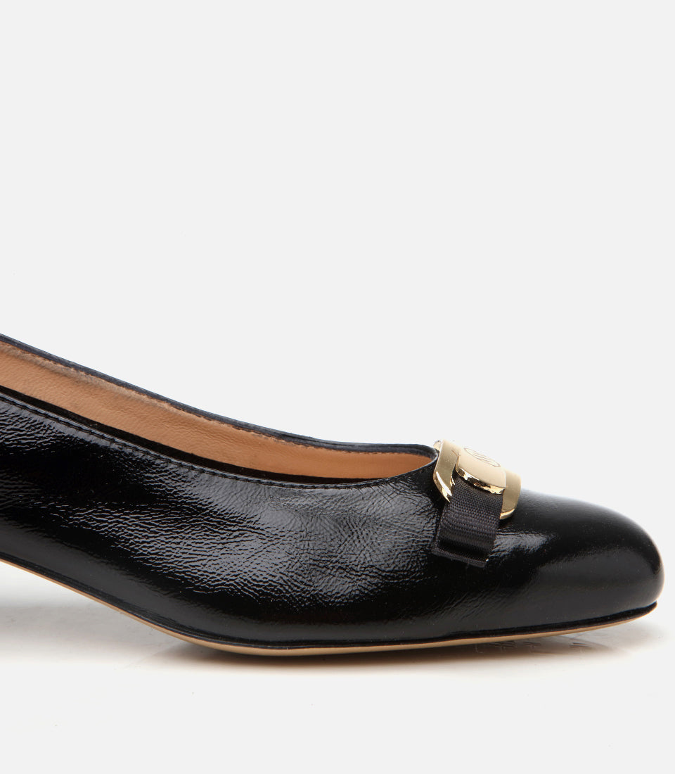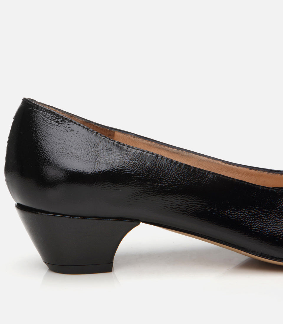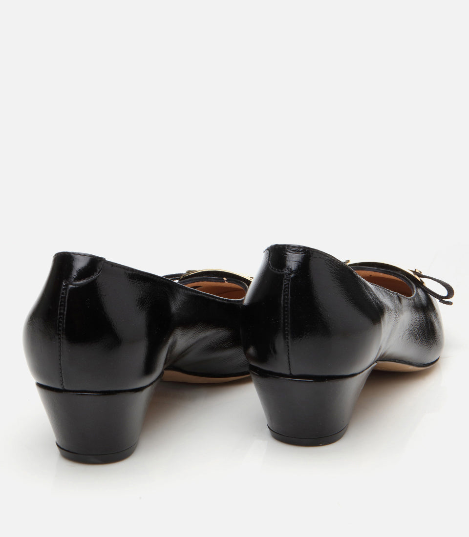 Women’s Rugan Leather Black Block-Heel Shoes - Black