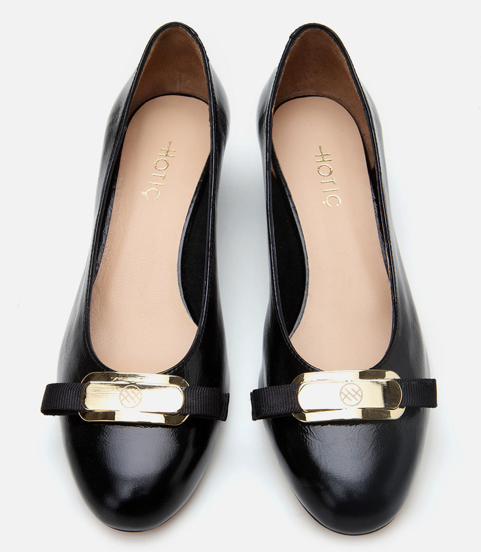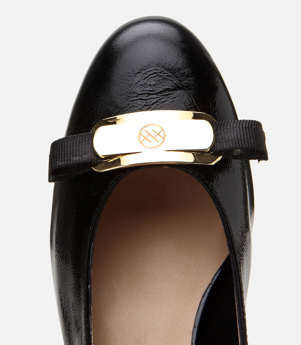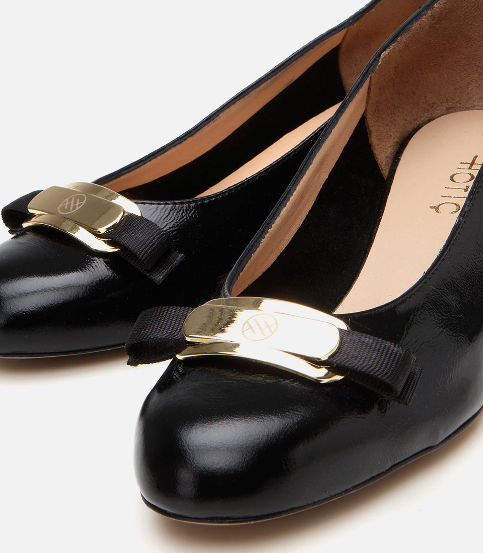 Women’s Rugan Leather Black Block-Heel Shoes - Black
