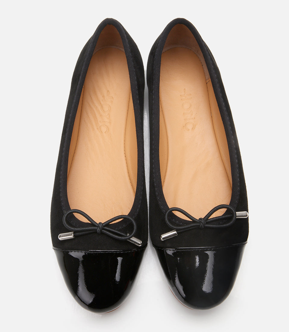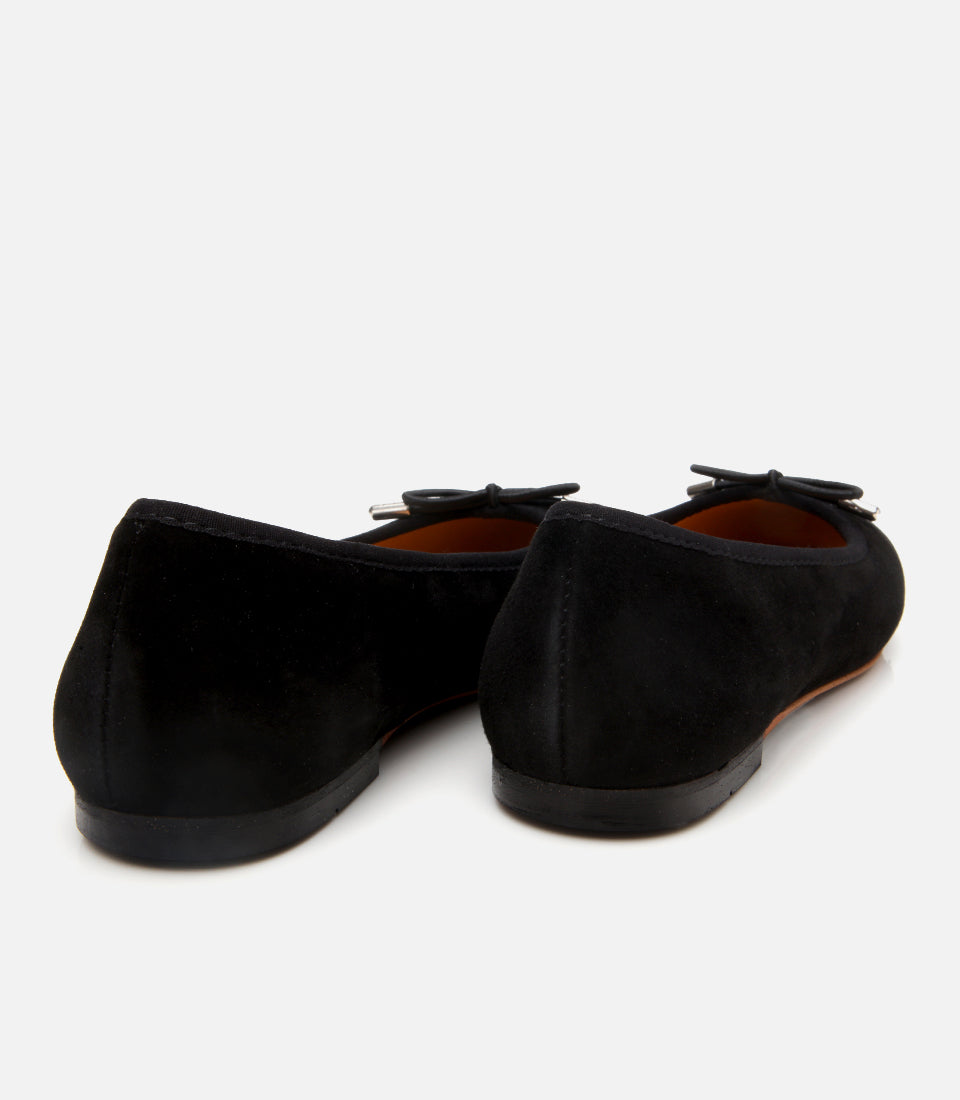 Women’s Suede Leather Black Flexible Sole Flats - Black