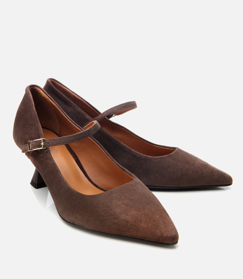 Women’s Suede Leather Mary Jane Stiletto - Brown