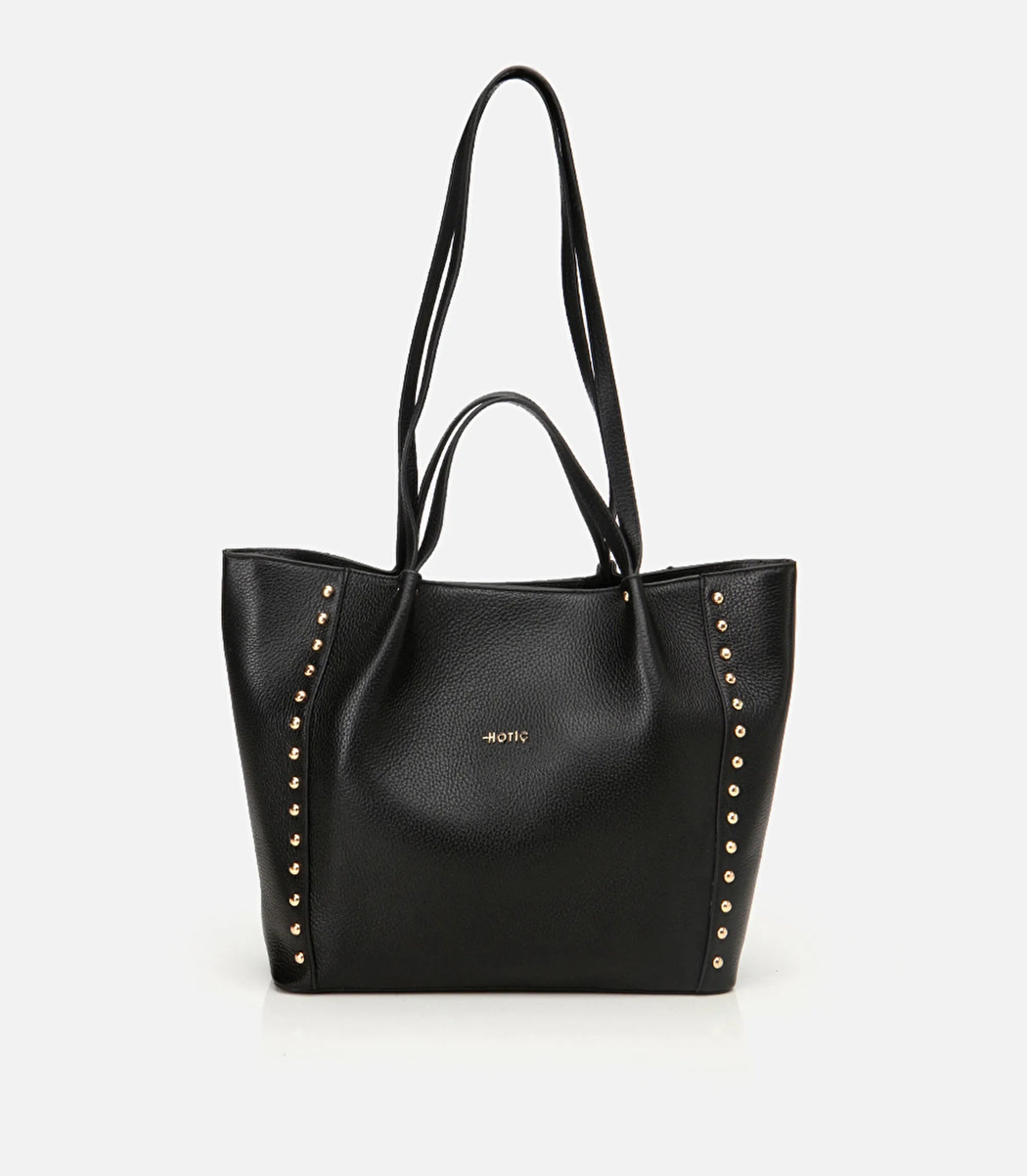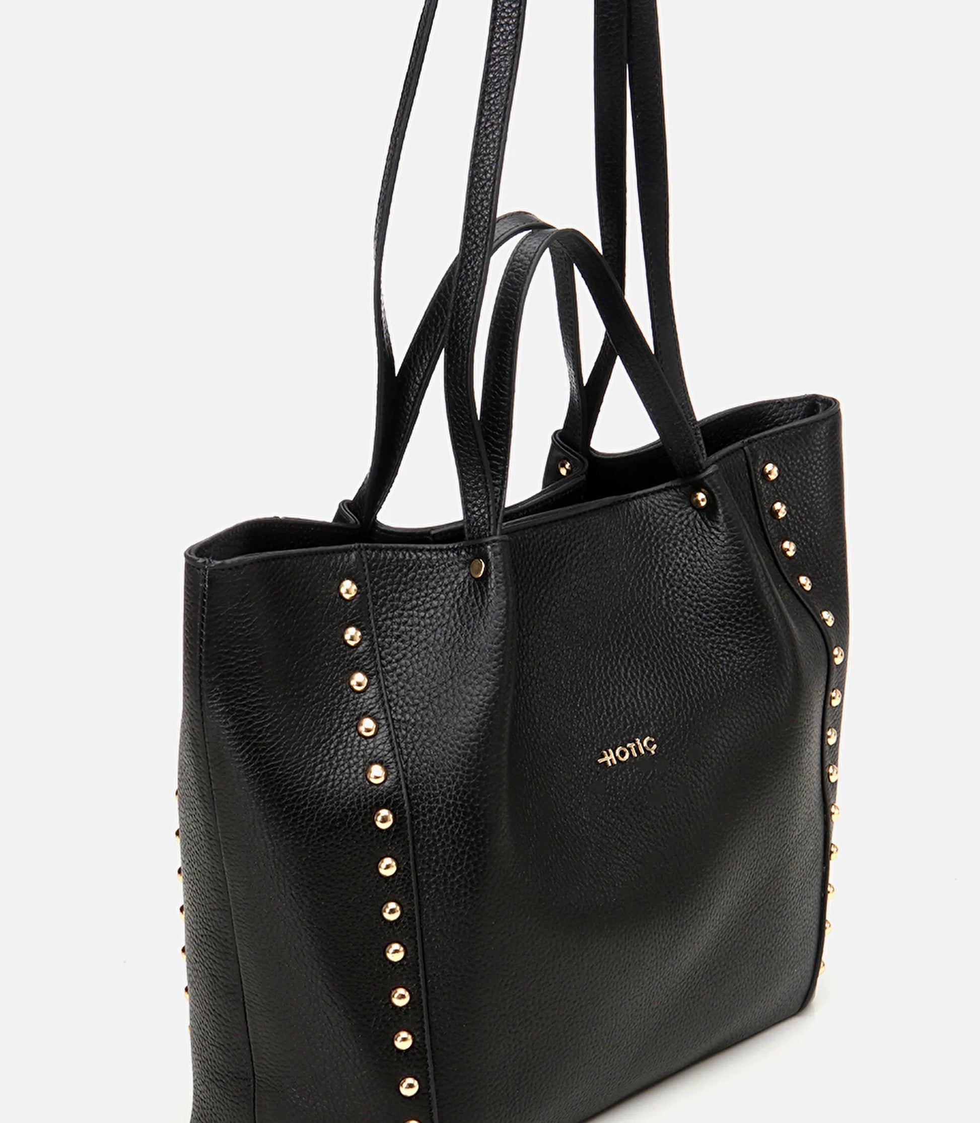Gold-tone stud detailing that adds a modern, confident twist to a classic tote