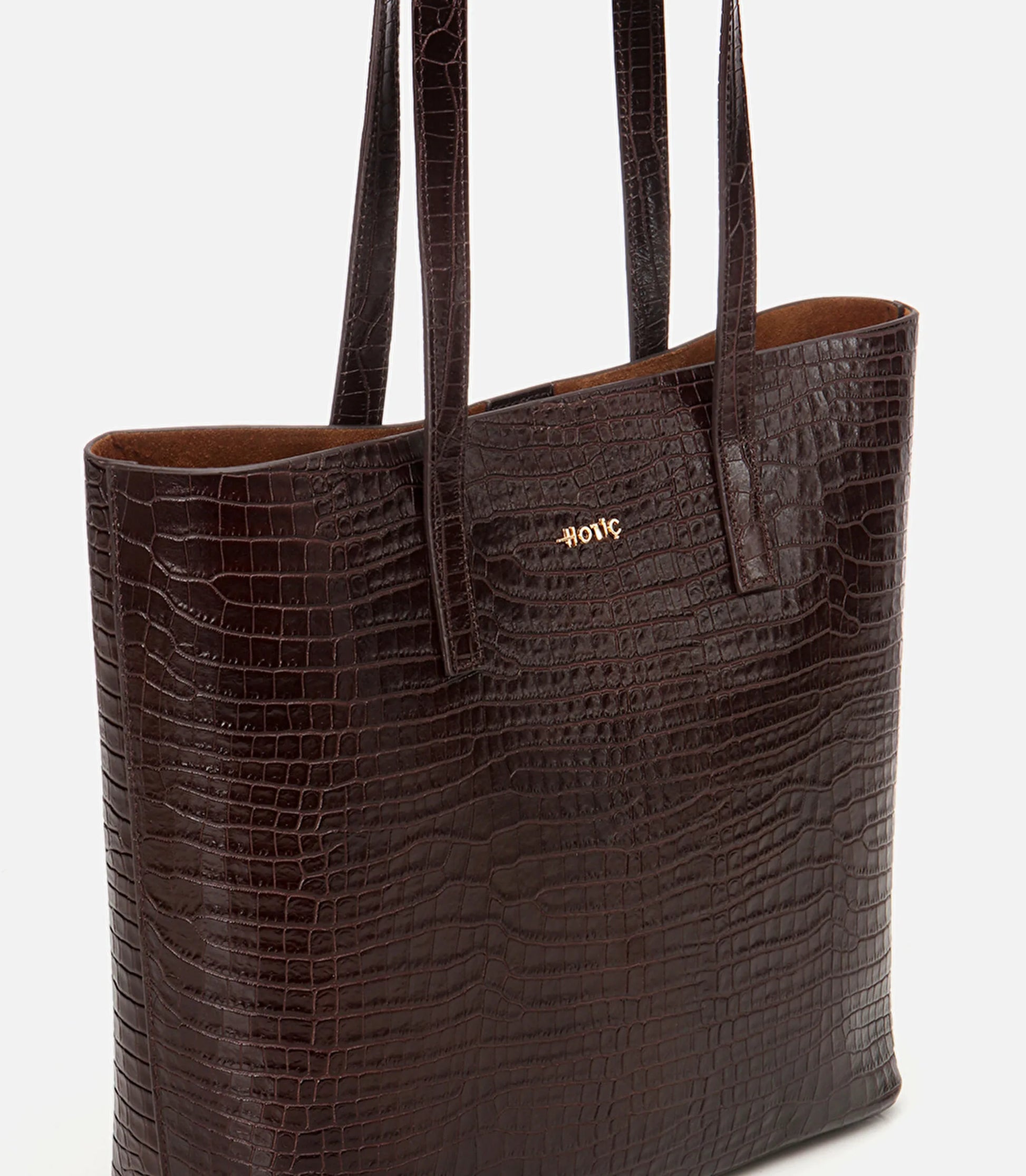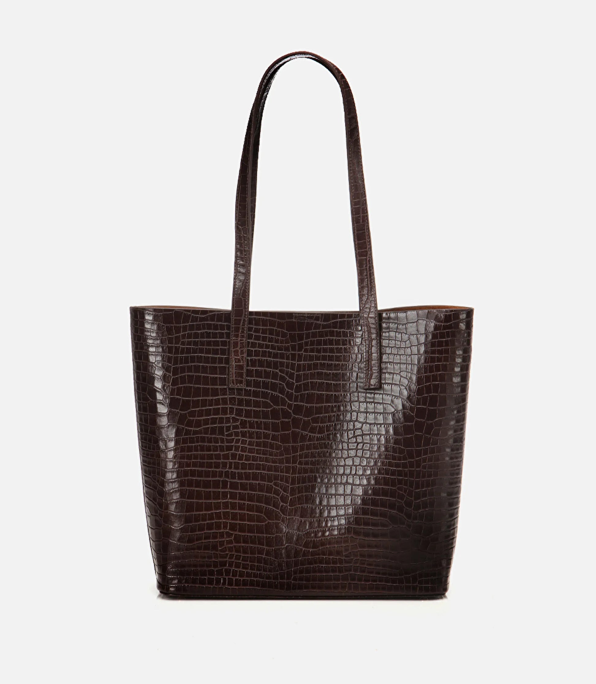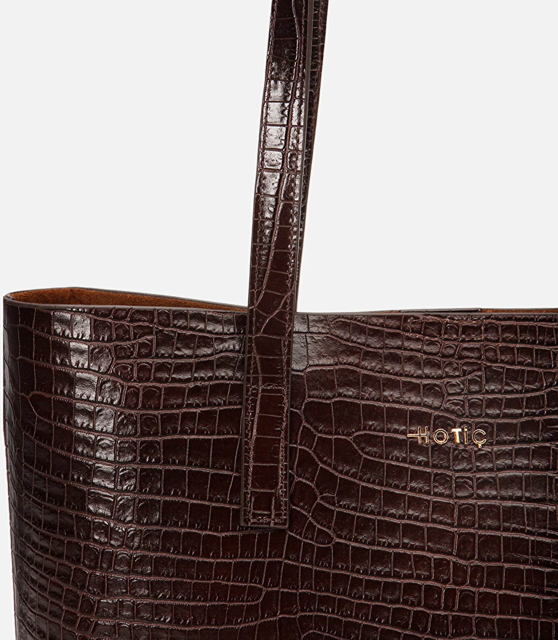 Elegant croc-effect brown leather that elevates any outfit